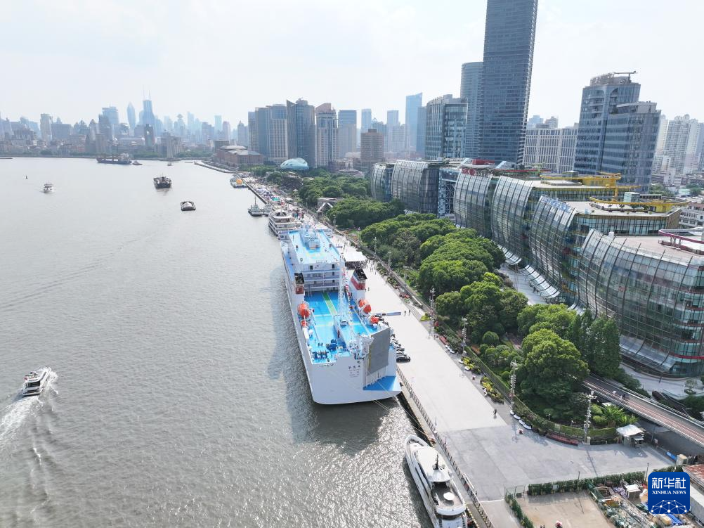 6月8日拍摄的停靠在上海港国际客运中心码头的“鉴真号”轮(无人机照片)。