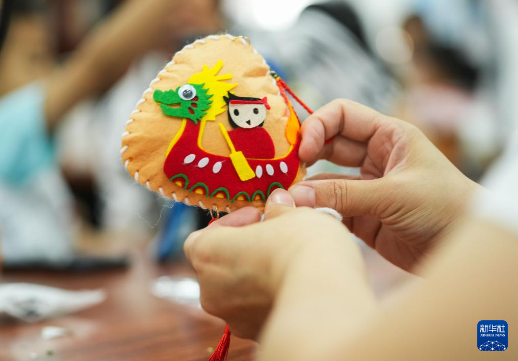 6月7日,在湖北省宜昌市夷陵区“端午文化月”系列民俗活动现场,民间艺人制作面塑粽子饰品。