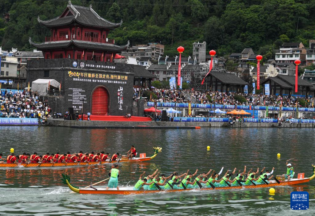 当日,2024年民体杯全国龙舟、独竹漂比赛在贵州省黔东南苗族侗族自治州镇远古城开幕。来自全国的53支龙舟和独竹漂队伍,在镇远古城的㵲阳河上参加为期三天的水上竞技。赛事期间同时举办镇远县第四十届赛龙舟文化节,观众和游客可体验非遗集市、“千人抢鸭子”等丰富多彩的活动。