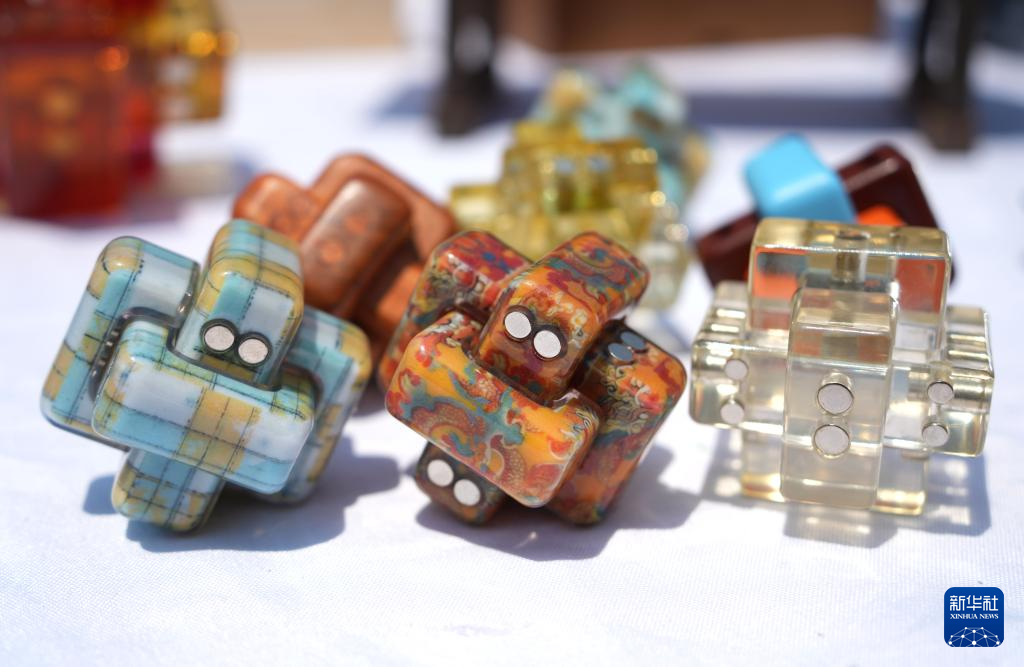 这是6月11日在首届鲁班文创设计大赛优秀作品展上拍摄的以鲁班锁为原型设计制作的文创作品。