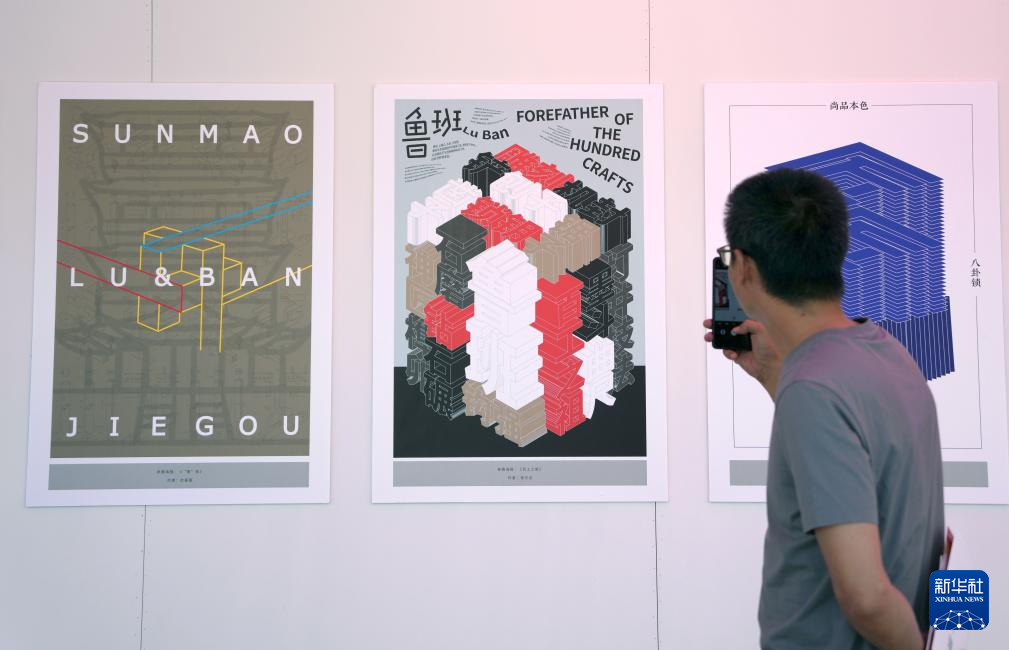 6月11日,在首届鲁班文创设计大赛优秀作品展上,观众在观看平面设计类作品。