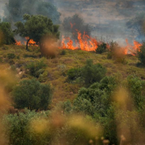 6月12日,以色列北部加利利地区遭受火箭弹袭击后冒出滚滚浓烟。