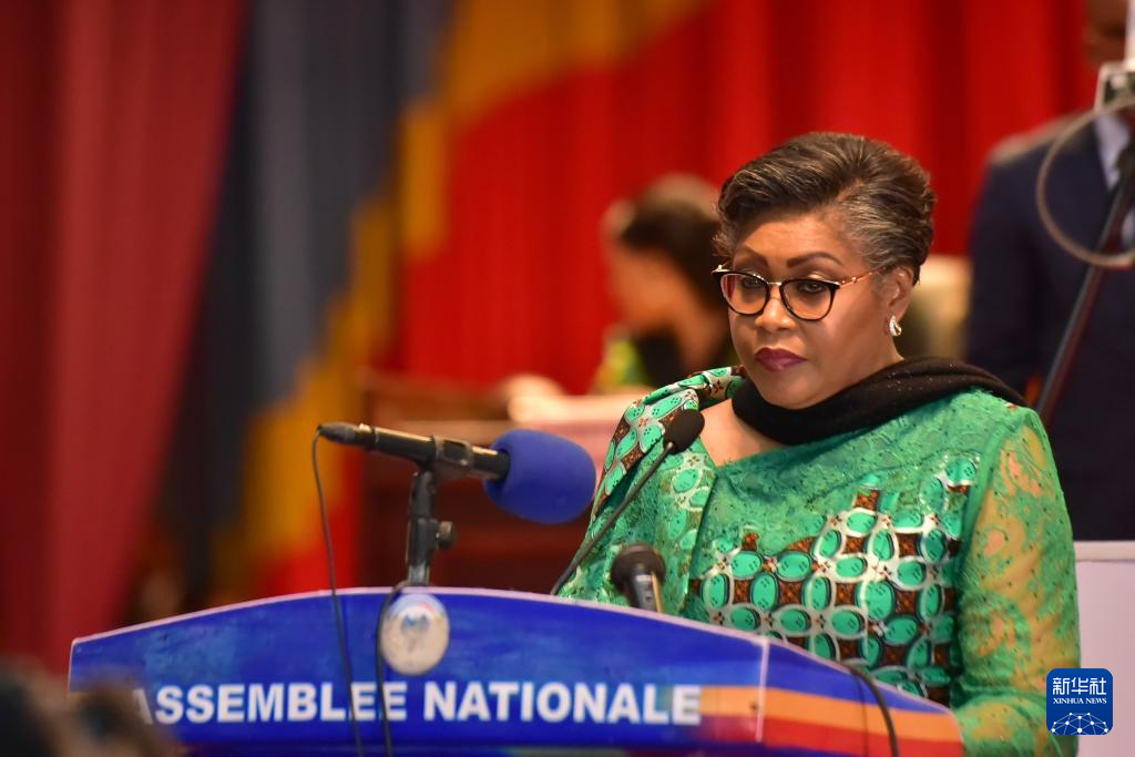 6月11日,在刚果(金)首都金沙萨,朱迪丝·苏米努瓦·图卢卡在国民议会上发言。