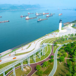 2024年5月24日,市民在湖北宜昌市滨江公园灯塔广场游玩。该广场是在实施岸线复绿等综合措施后,由老旧码头改造而成。