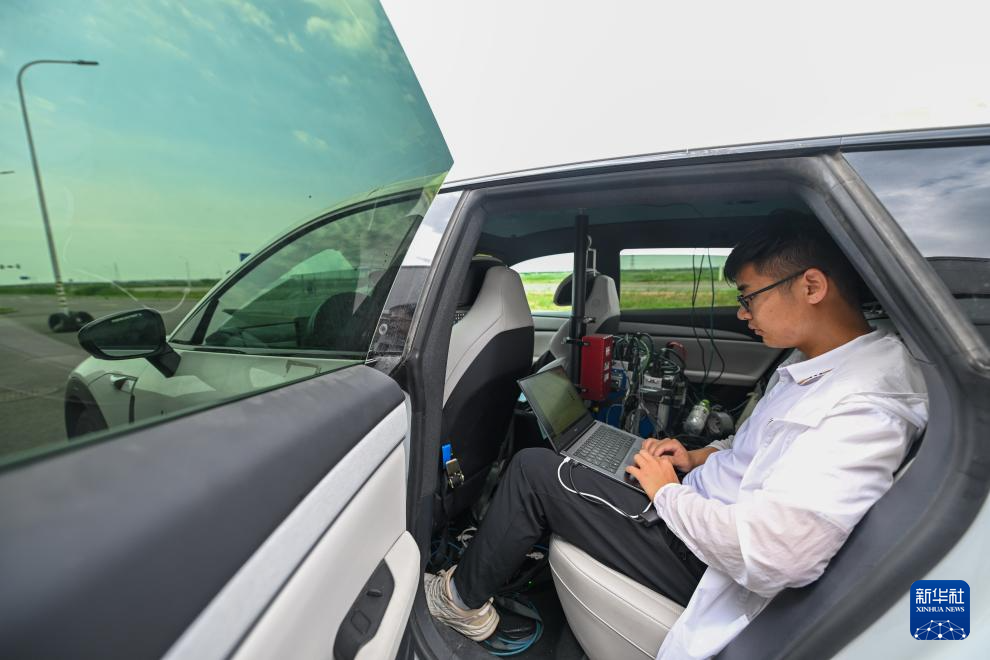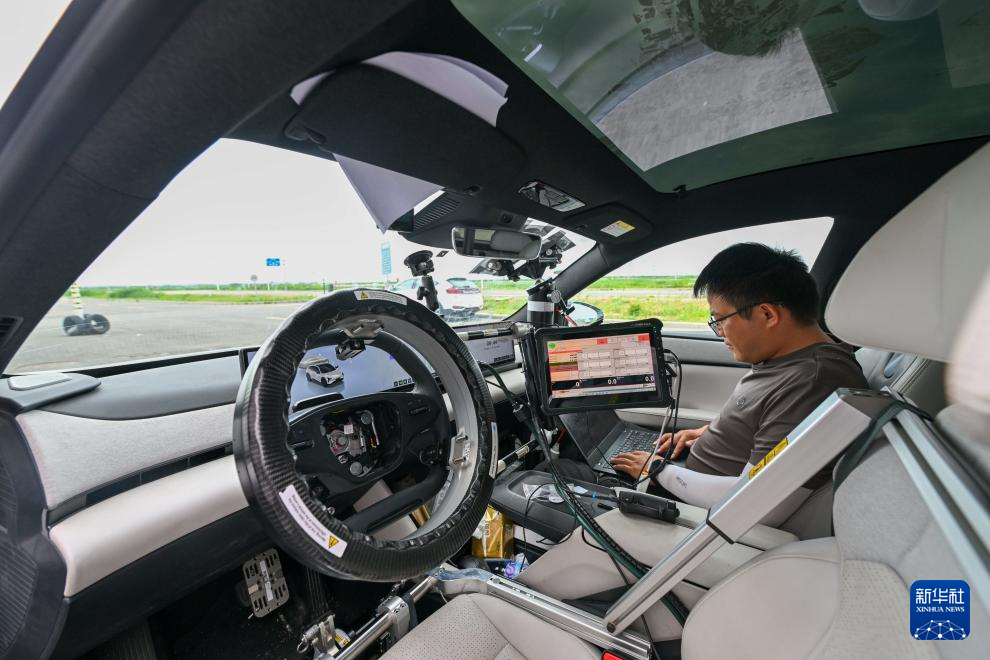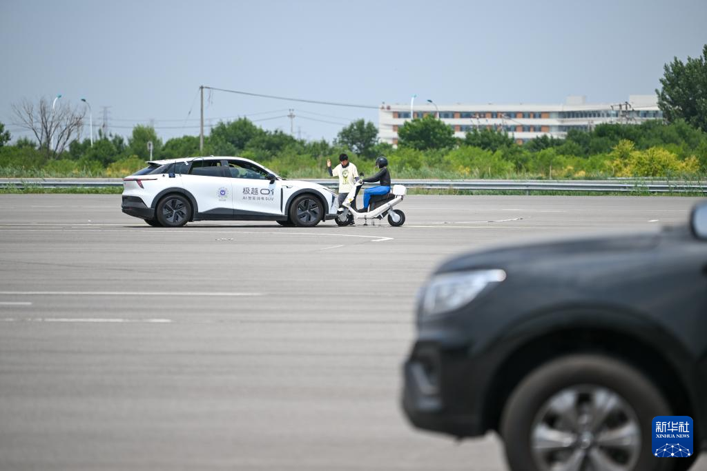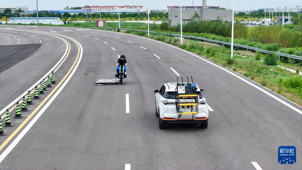 6月14日,在天津(西青)国家级车联网先导区封闭测试场,测试人员准备对一款智能网联汽车进行自动驾驶主动安全功能测试。