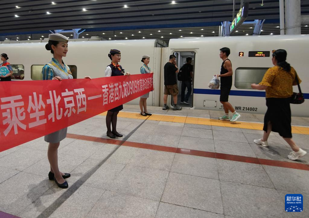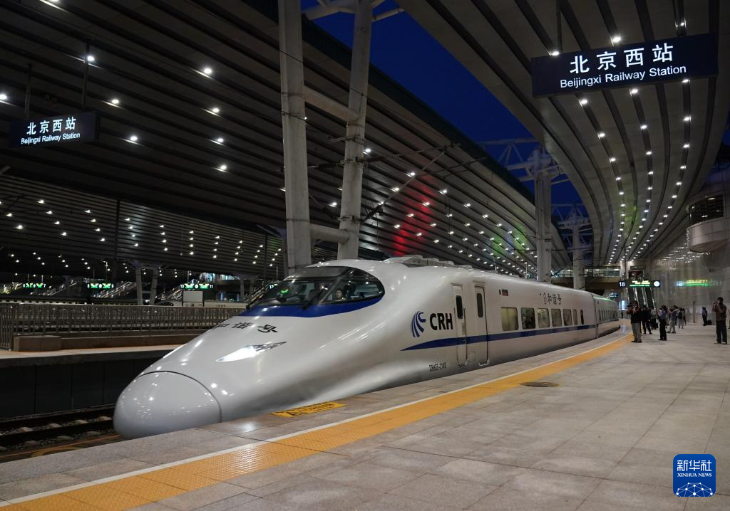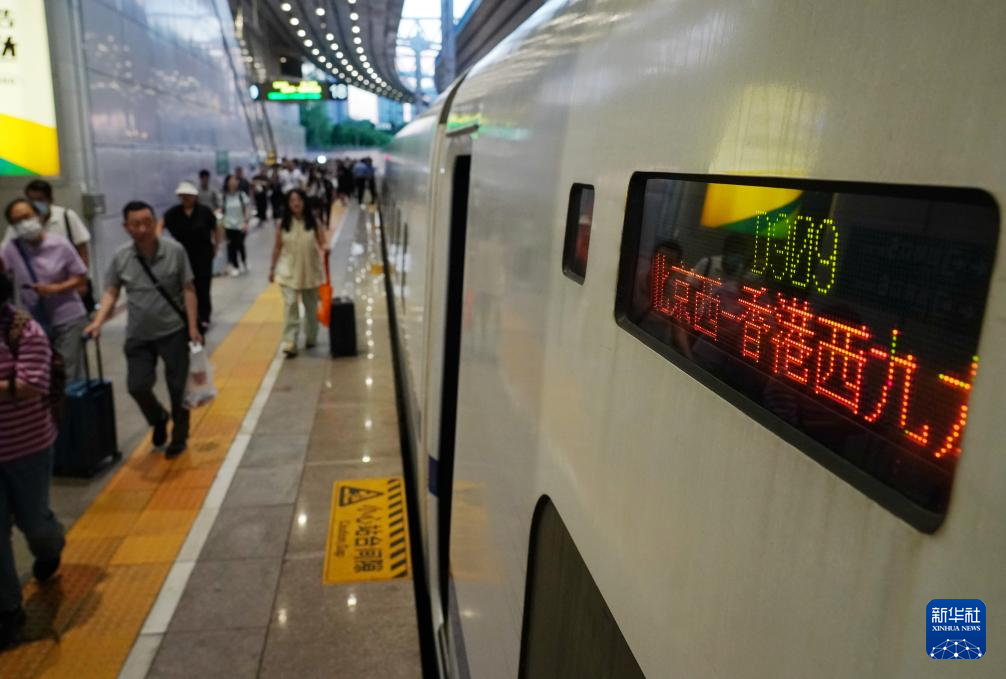 6月15日,D909次高铁动卧列车驶离北京西站,奔向香港西九龙站。