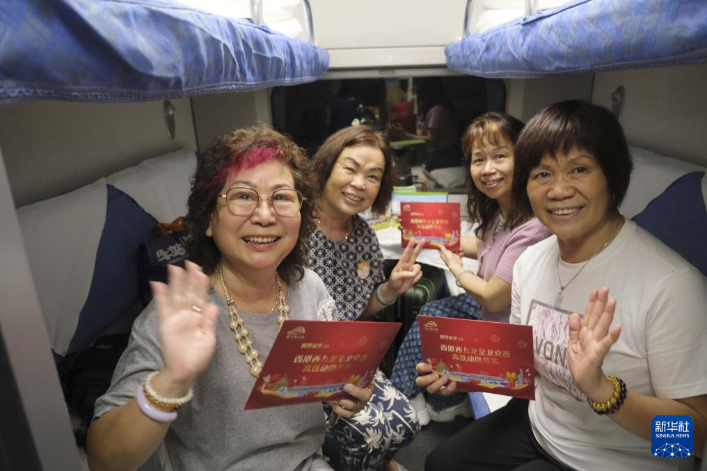 6月15日,乘客在香港西九龙至上海虹桥D908次高铁动卧列车上合影留念。新华社记者 褚萌萌 摄pagebreakpagebreak