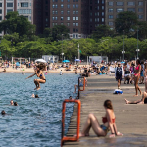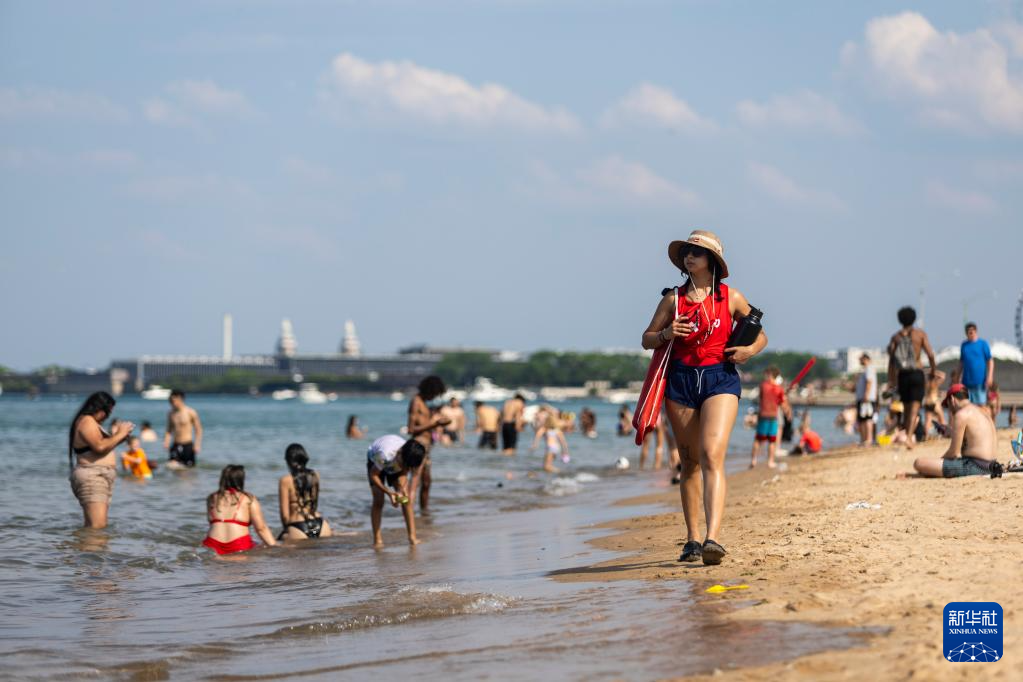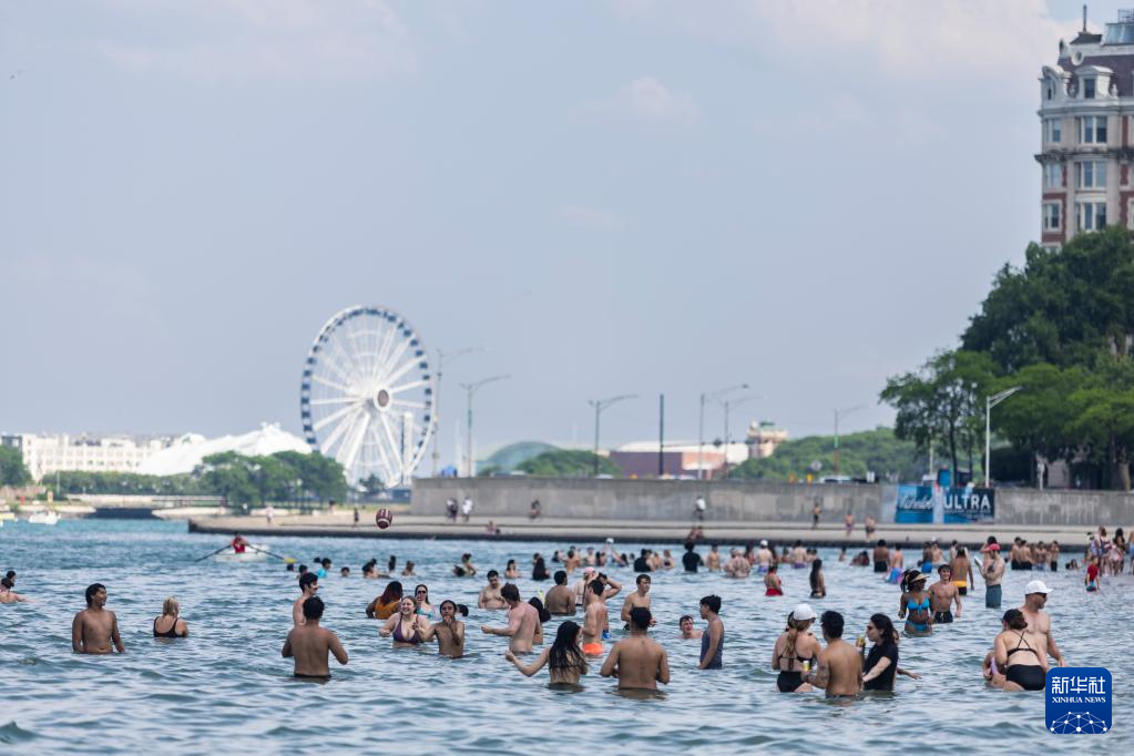 6月17日,人们在美国芝加哥密歇根湖戏水消暑。