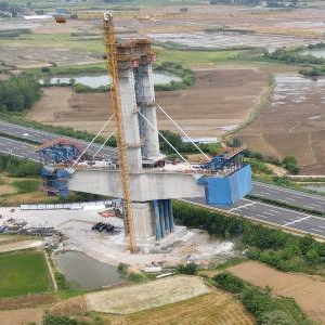 当日,由中国铁建大桥局承建的新建上海至南京至合肥高速铁路跨沪陕高速公路特大桥主桥塔柱顺利封顶,为后续施工奠定基础。