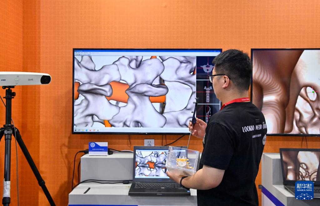 6月18日,长春理工大学工作人员在2024长春国际光电博览会上展示微创外科手术导航系统。