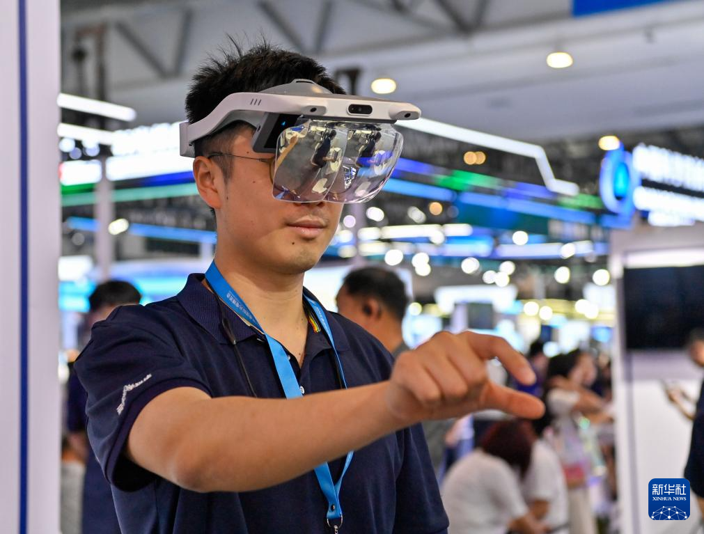 6月18日,参观者在2024长春国际光电博览会上试戴VR眼镜。