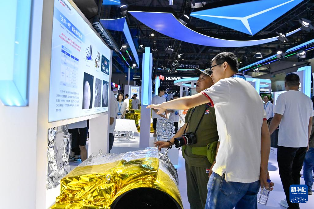 6月18日,观众在2024长春国际光电博览会上参观“天问一号”高分辨率相机模型。