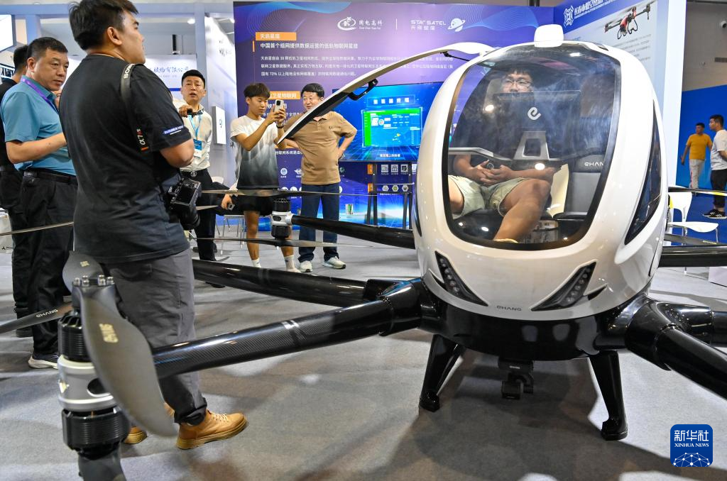6月18日,观众在2024长春国际光电博览会上体验EH216-S无人机。