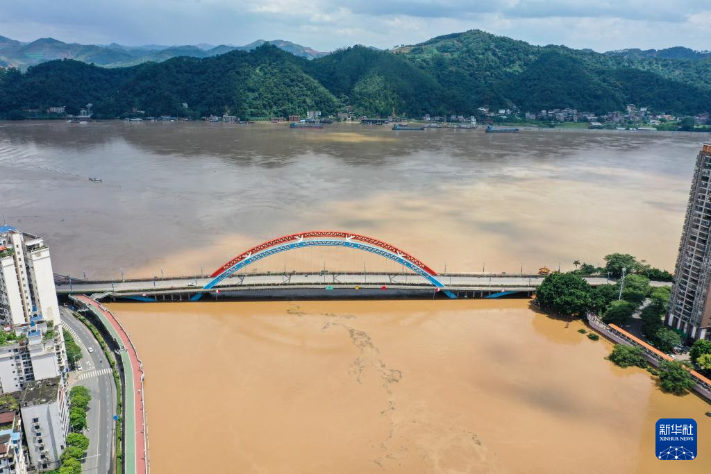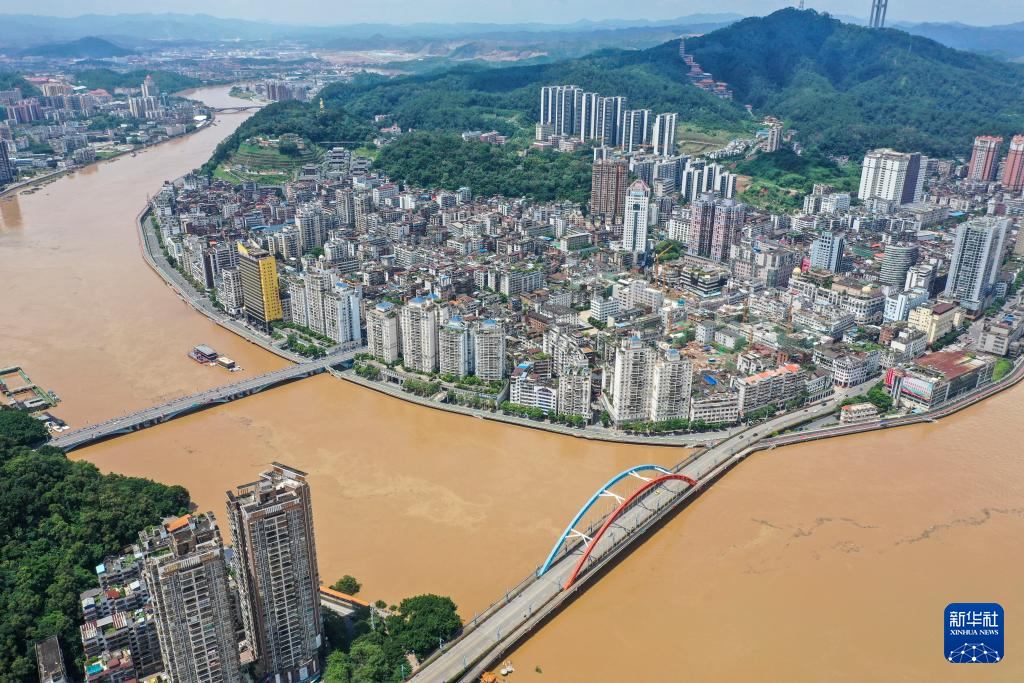 这是6月21日在广西梧州市区拍摄的洪峰水位(无人机照片)。