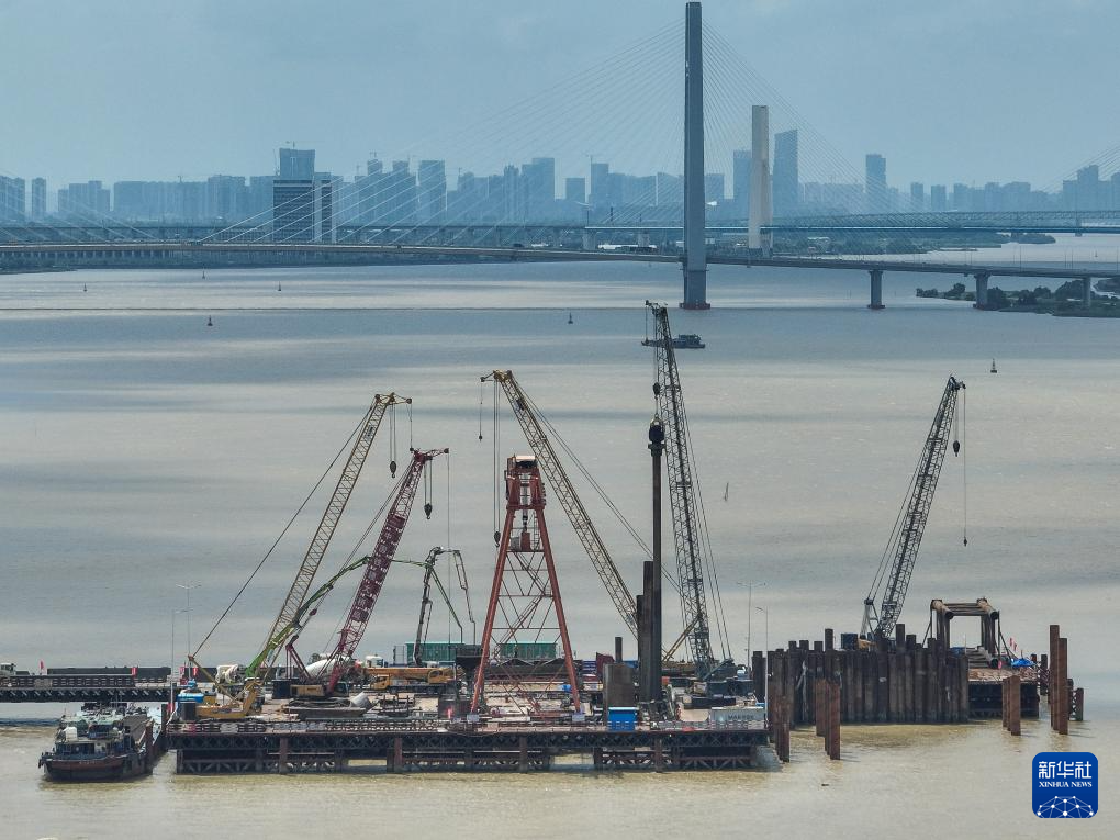 6月21日,中铁建大桥局施工人员进行万龙大桥主墩桩基混凝土浇筑施工。