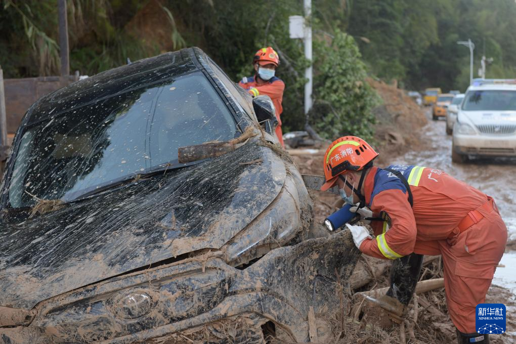 救援人员在广东省梅州市平远县泗水镇开展救援工作(6月20日摄)。
