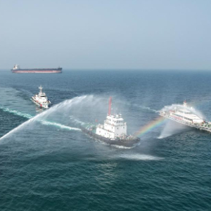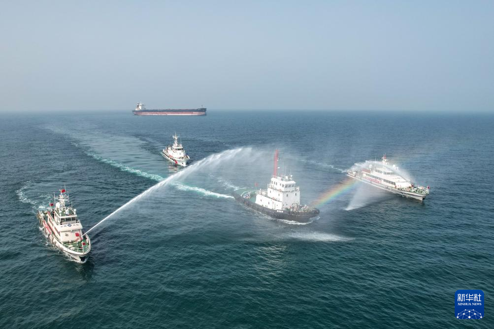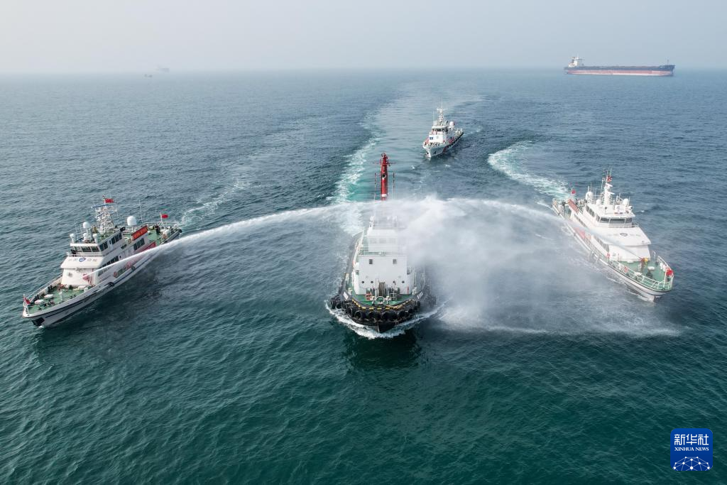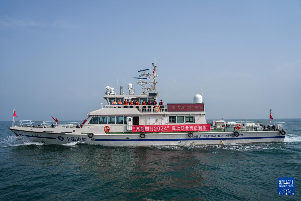 当日,两艘新型边检执法公务船列编山东出入境边防检查总站,并联合海事、海岸警察等部门在山东港口烟台港锚地开展“亮剑国门2024”海上执法演练,提升口岸联防联控协作能力。