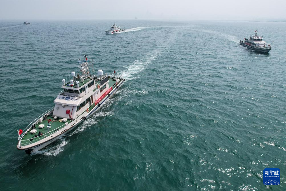 6月23日,新列编的边检执法公务船在进行海上演练(无人机照片)。