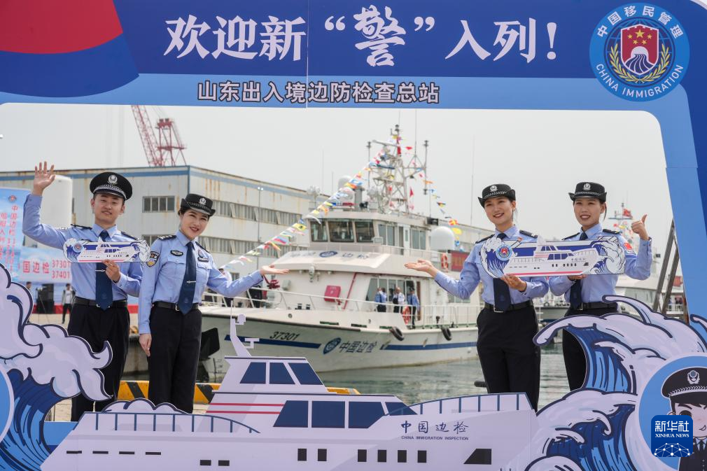 6月23日,烟台边检站民警欢迎新型边检执法公务船列编。