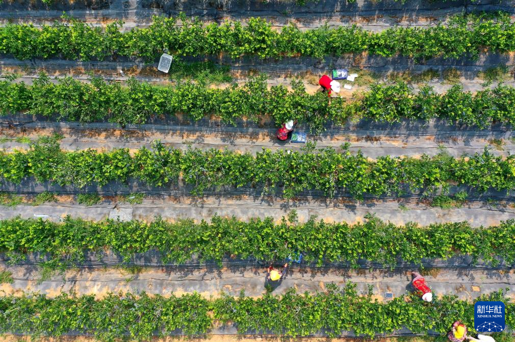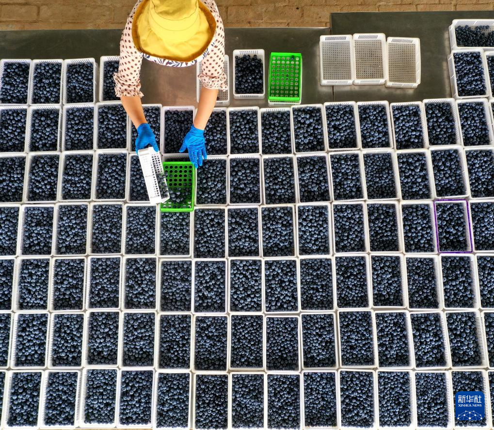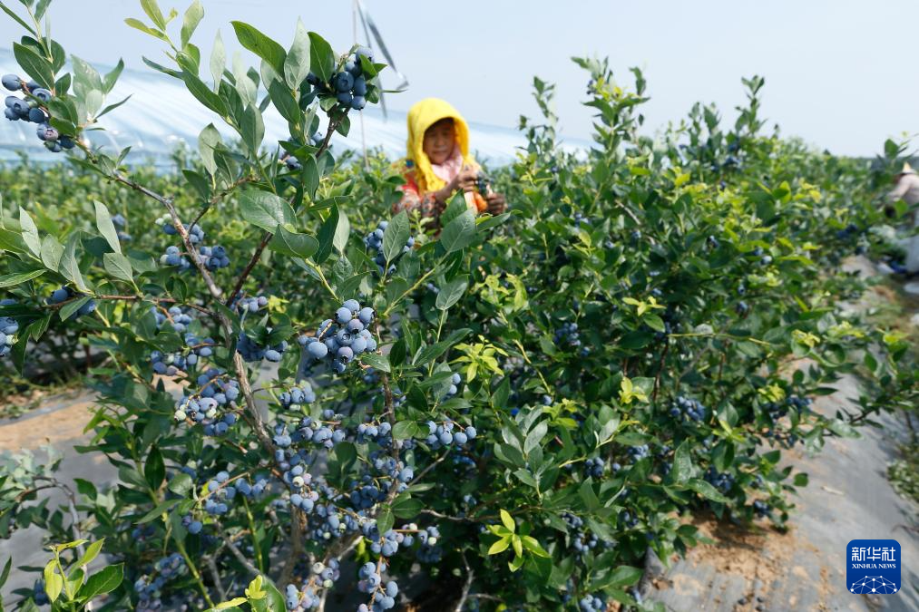 夏日,山东省青岛市即墨区金口镇东演堤村种植的蓝莓迎来收获季,当地农民忙着采摘、分拣、装运果实,供应各地市场。近年来,即墨区金口镇坚持发展现代特色农业,采取“基地+农户”模式,引导农民发展蓝莓种植,带动农民增收。