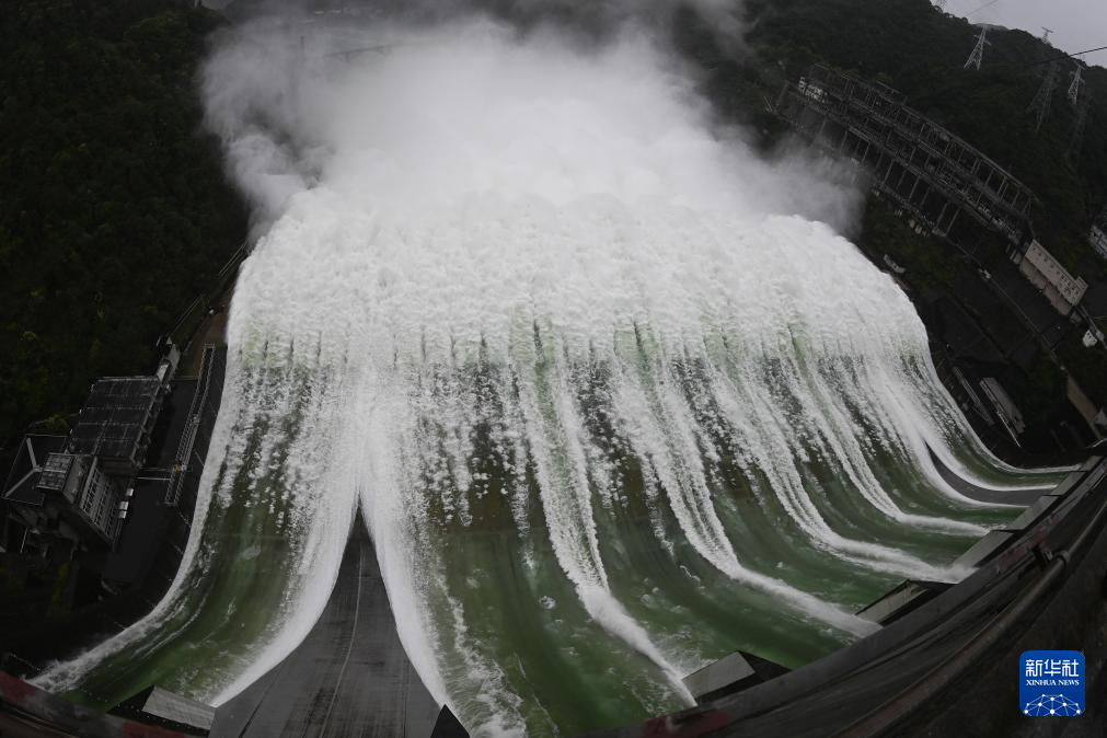 6月25日拍摄的开启7孔泄洪的新安江水库。