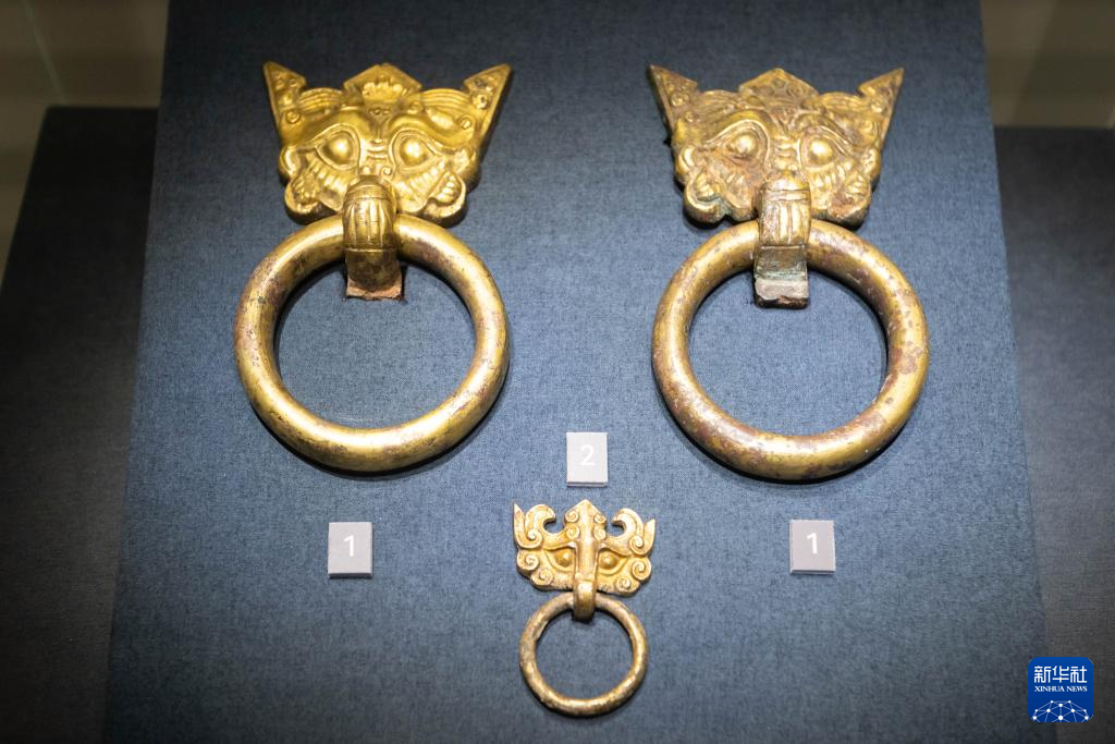 6月25日在“大汉未央——汉代王室精品文物展”上拍摄的鎏金铜铺首。