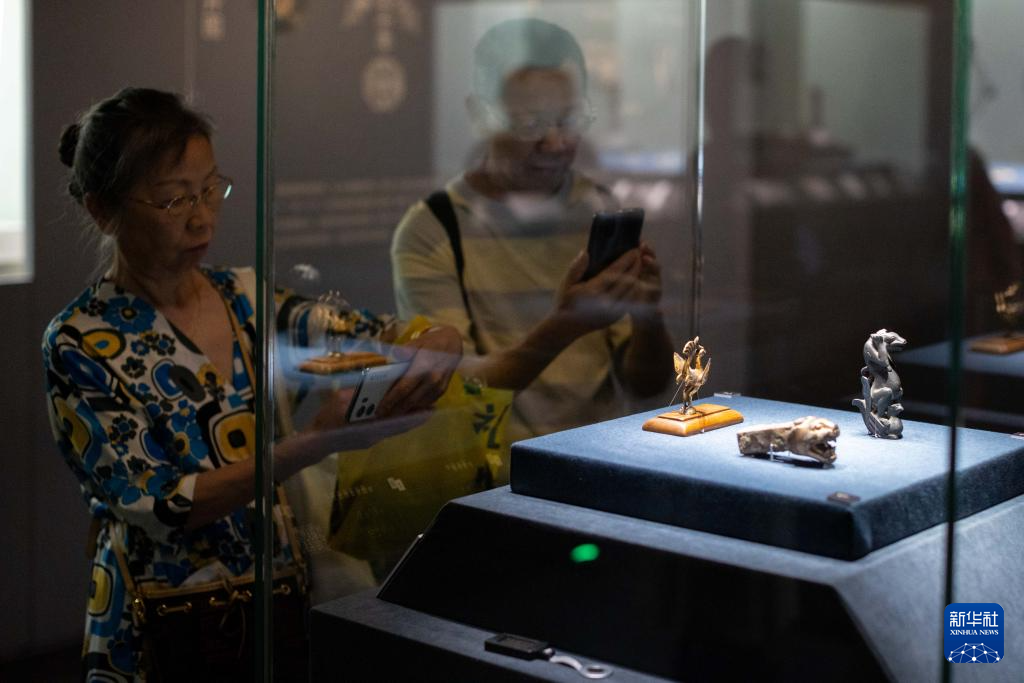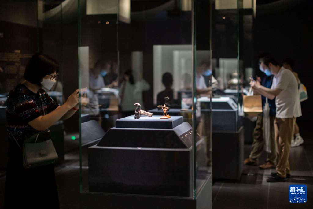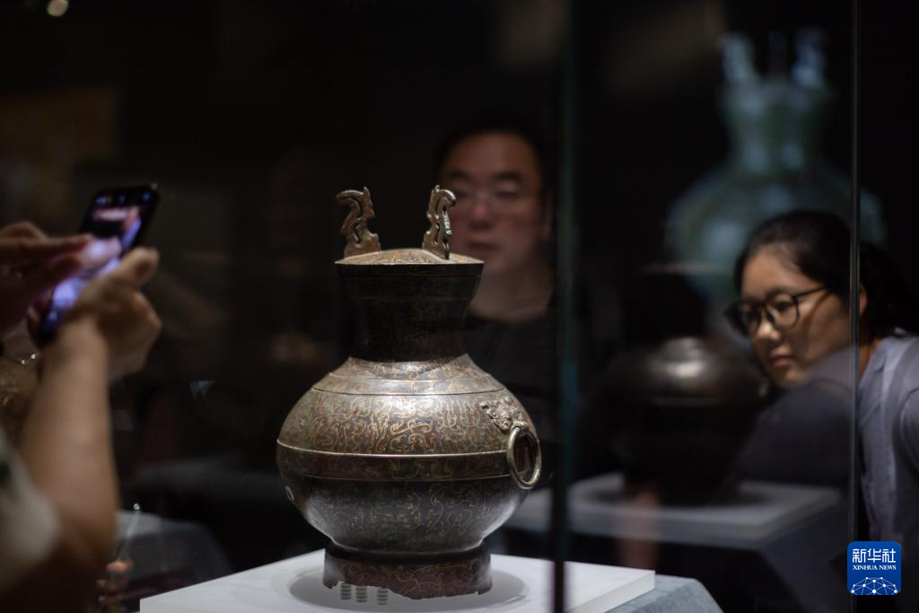 6月25日,观众在观看错金银鸟篆文铜壶。