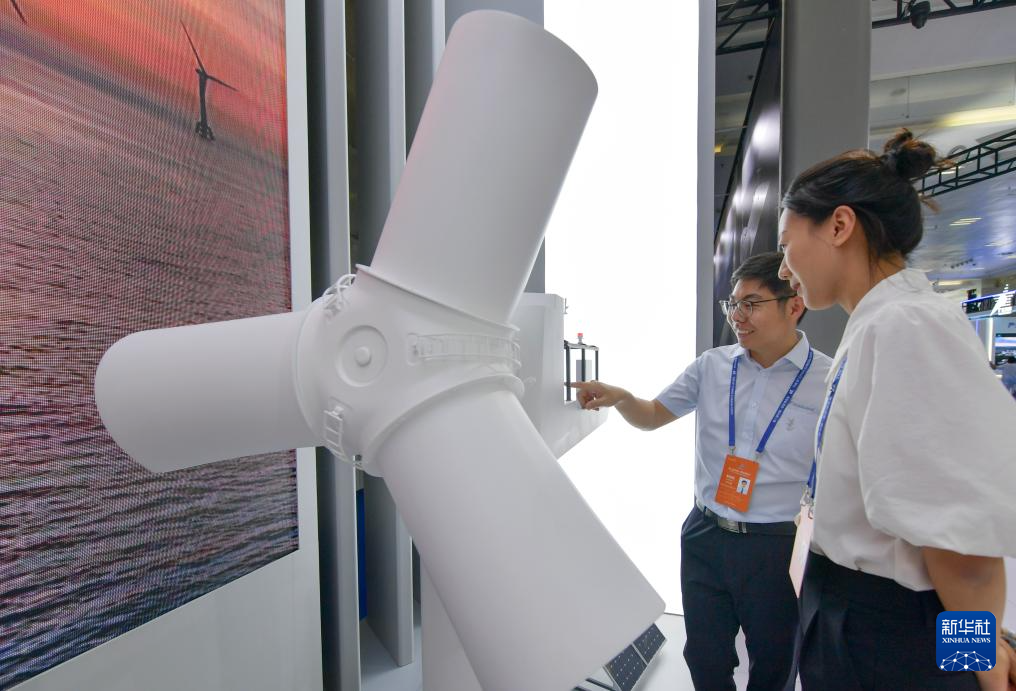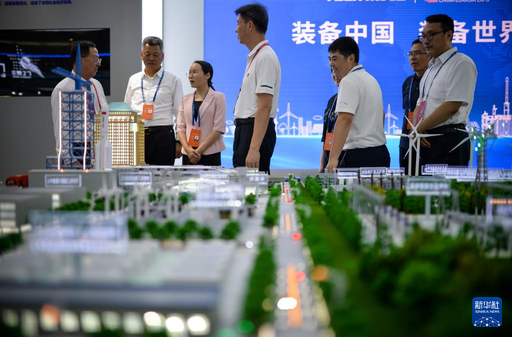 6月26日,在第八届中国—亚欧博览会上,参观者在金风科技股份有限公司展区了解展品。