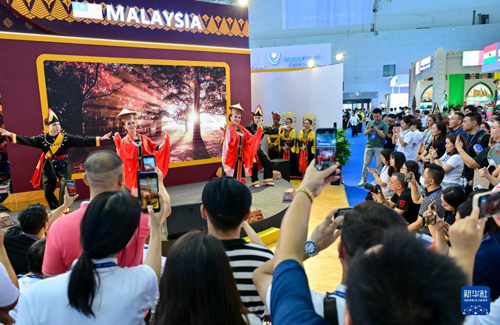 6月26日,在第八届中国—亚欧博览会上,参观者在马来西亚展区观看文艺表演。