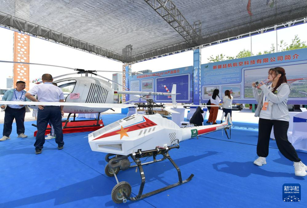 6月26日,在第八届中国—亚欧博览会上,参观者在新疆喆航航空科技有限公司展区了解展品。