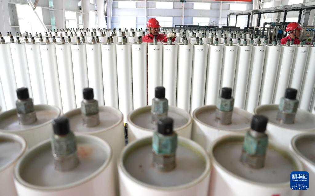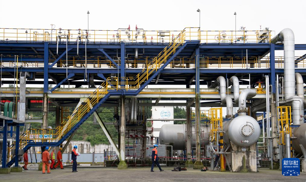 6月25日,在重庆市涪陵区白涛镇油坊村的涪陵页岩气田白涛产出水处理站,工作人员对双膜减量系统进行巡检。该站采用先进的“预处理+双膜减量化+蒸发结晶”工艺流程处理,产出水中的氯化物等物质被蒸汽蒸发浓缩成工业盐,满足国家环保要求和精制工业盐二级标准要求,处理合格的产出水达到国家污水综合排放一级标准。
