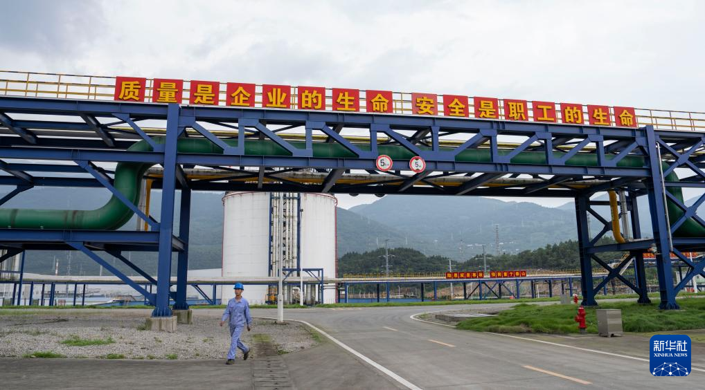 6月25日,在重庆涪陵液化天然气(LNG)工厂,工作人员从运输管道旁走过。