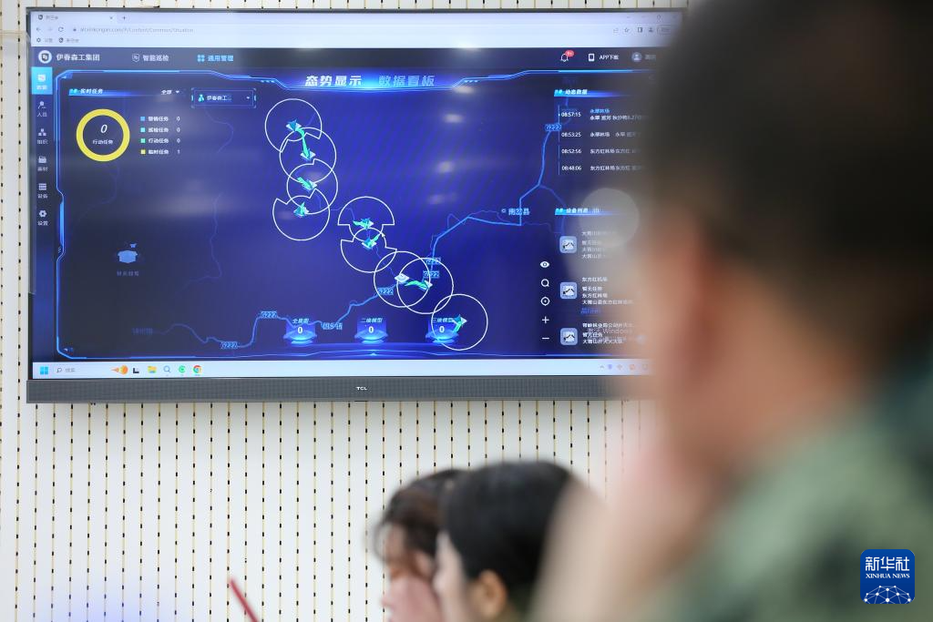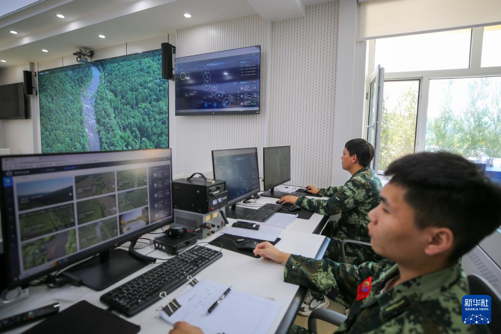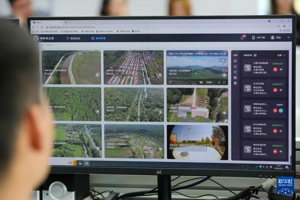 6月27日,在伊春森工带岭林业局有限责任公司森林扑灭火大队指挥室,调度员在电脑上用智能巡检平台操控无人机进行空中巡护作业。