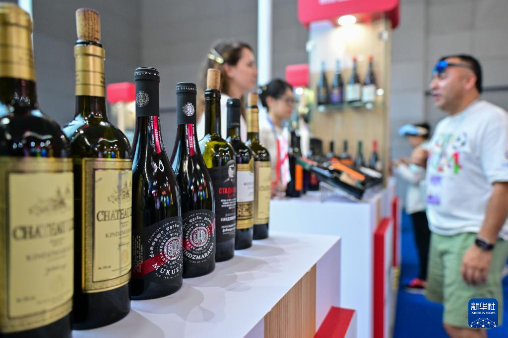 6月27日,参观者在第八届中国—亚欧博览会格鲁吉亚展台了解葡萄酒。
