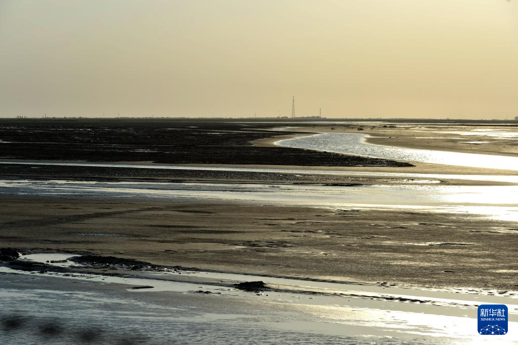 这是6月25日在山东东营黄河三角洲国家级自然保护区湿地拍摄的互花米草被清理过后的河滩。