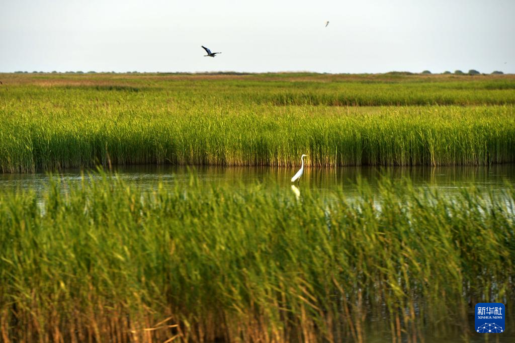这是6月25日在山东东营拍摄的黄河三角洲国家级自然保护区湿地(无人机照片)。