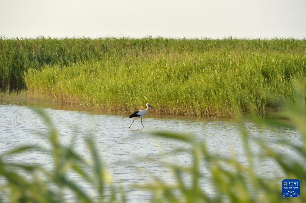 这是6月25日在山东东营拍摄的黄河三角洲国家级自然保护区的东方白鹳。