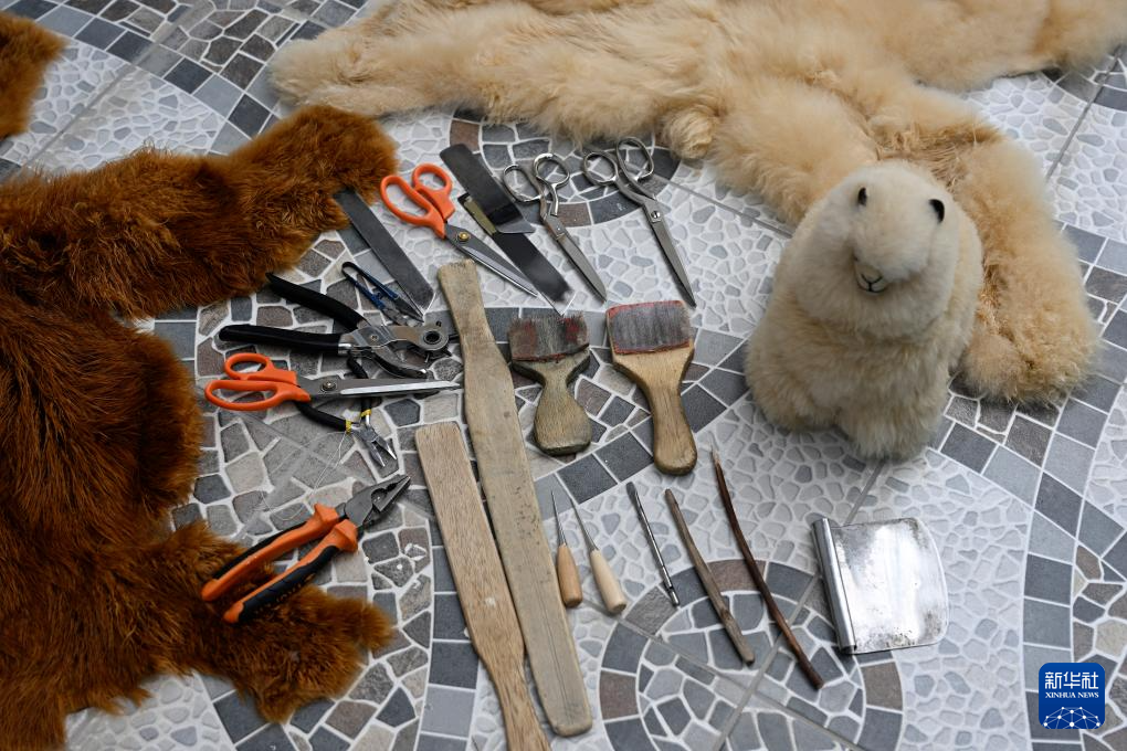 这是6月20日在秘鲁阿雷基帕拍摄的羊驼皮毛和手工制作羊驼玩偶所使用的工具。