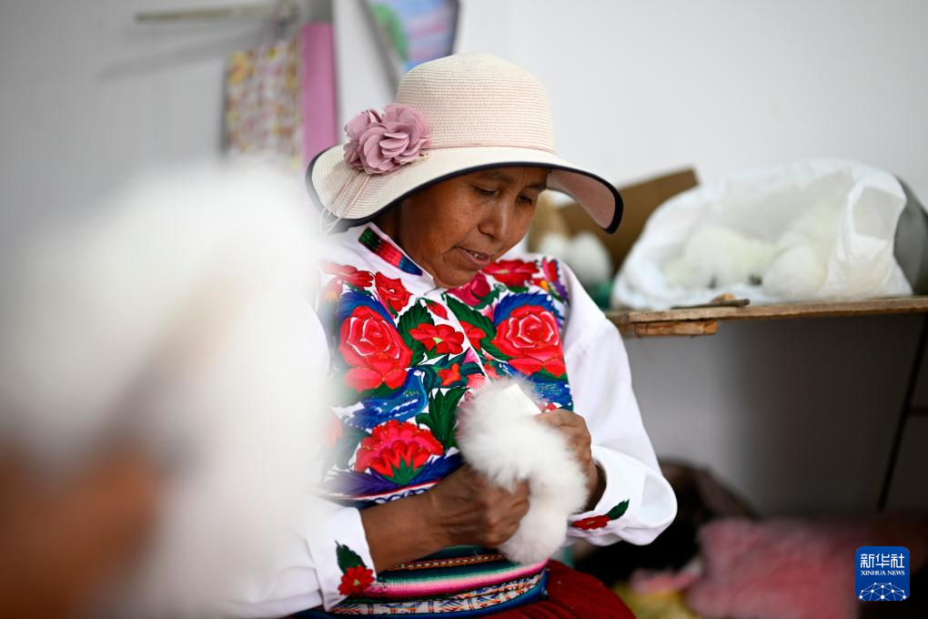 6月20日,手工艺人在秘鲁阿雷基帕制作羊驼玩偶。