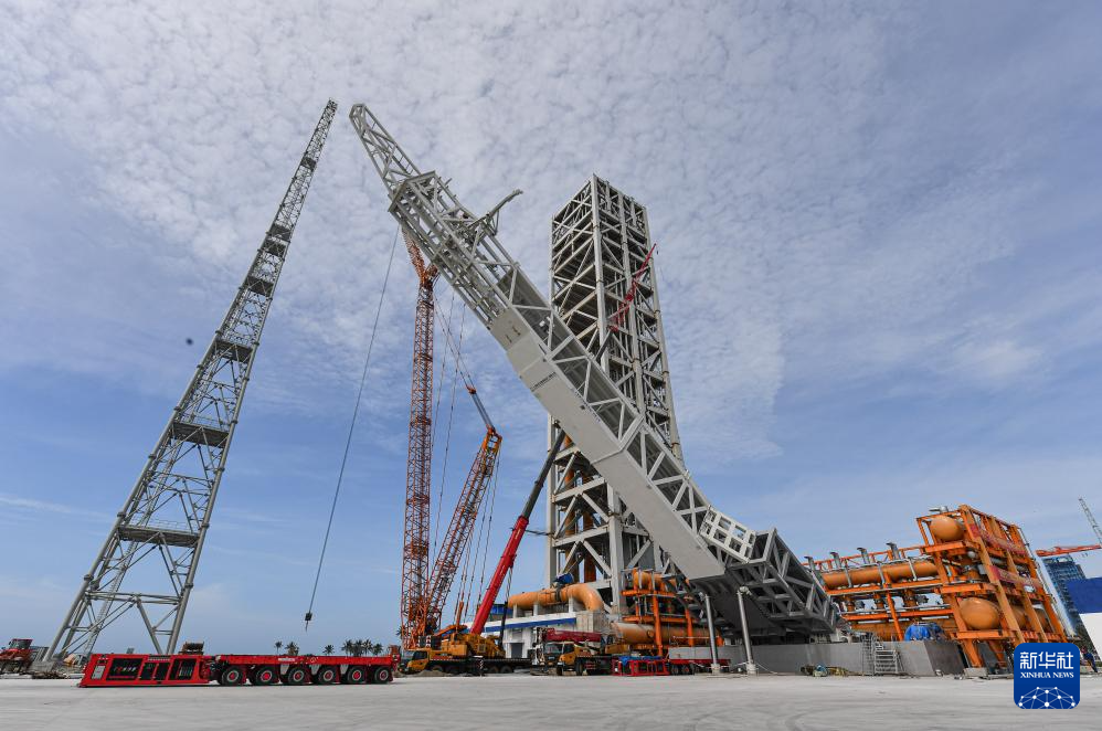 6月30日在海南商业航天发射场二号发射工位拍摄的模拟起竖。
