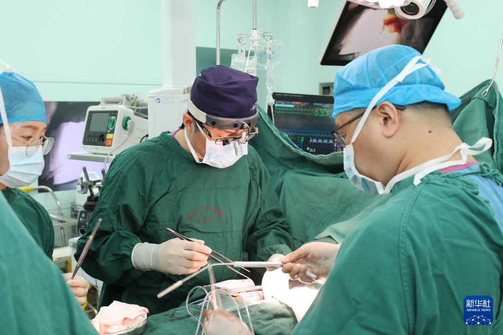 在临汾市中心医院,刘辉(中)在进行手术(2024年6月18日摄)。