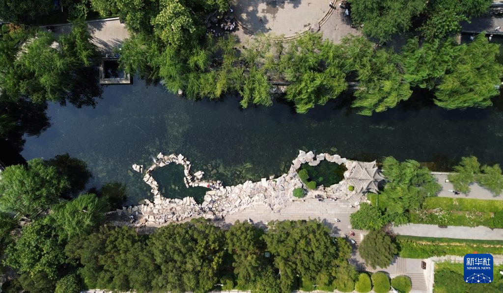 这是7月3日拍摄的位于济南市区的泉水绿道和白石泉(无人机照片)。