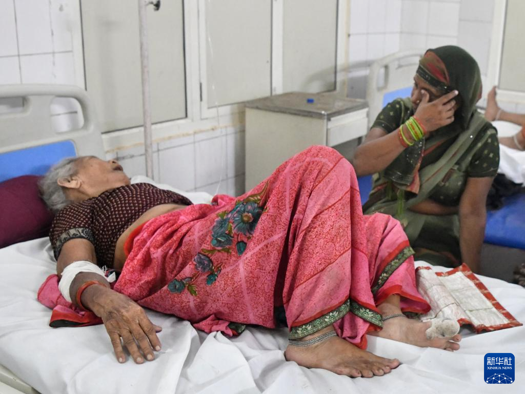 7月3日,在印度北方邦哈特勒斯,踩踏事故中的伤者在医院接受治疗。
