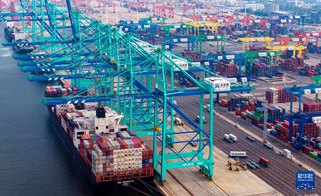 这是7月3日拍摄的天津港集装箱码头一景(无人机照片)。