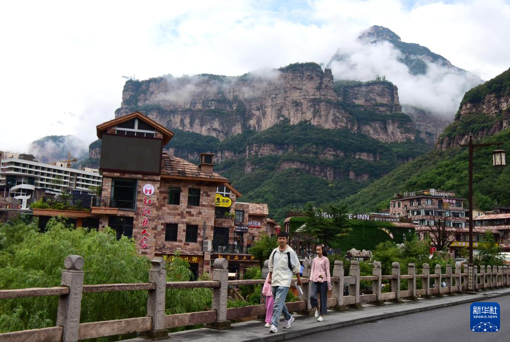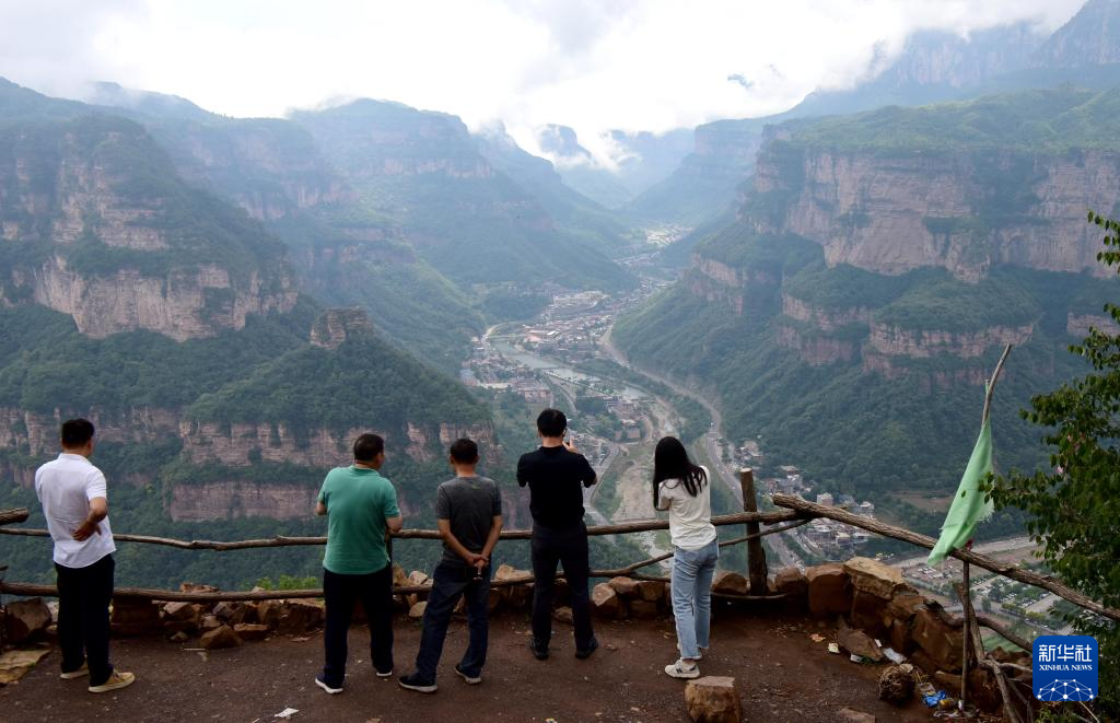 7月2日,游客在位于太行山深处的林州市石板岩镇一处观景平台游览。