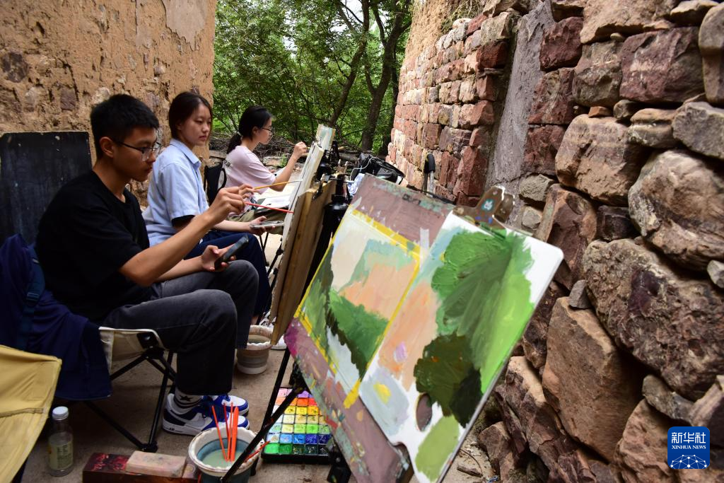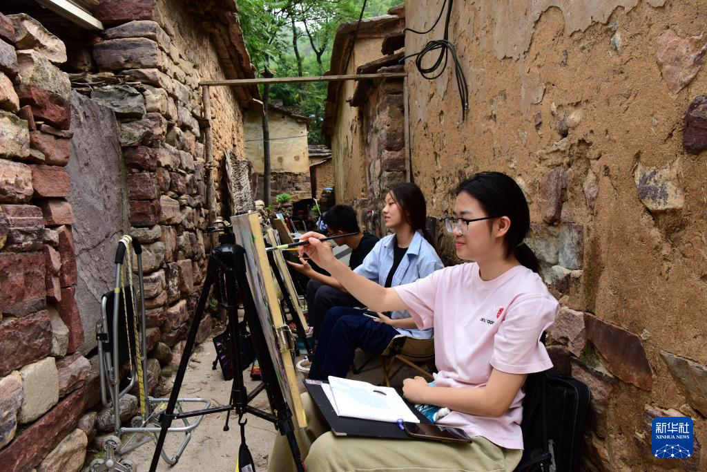 7月3日,来自河南郑州的学生在林州市石板岩镇写生。