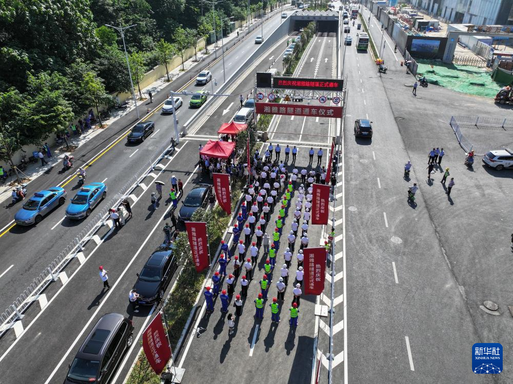 这是7月5日拍摄的长沙湘雅路隧道通车仪式现场(无人机照片)。
