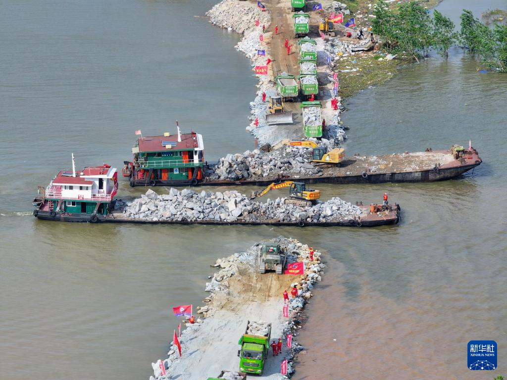 记者从湖南省岳阳市防汛抗旱指挥部获悉,截至8日17时,团洲垸洞庭湖大堤226米决口已封堵180.5米(左岸100.5米,右岸80米),剩余45.5米。