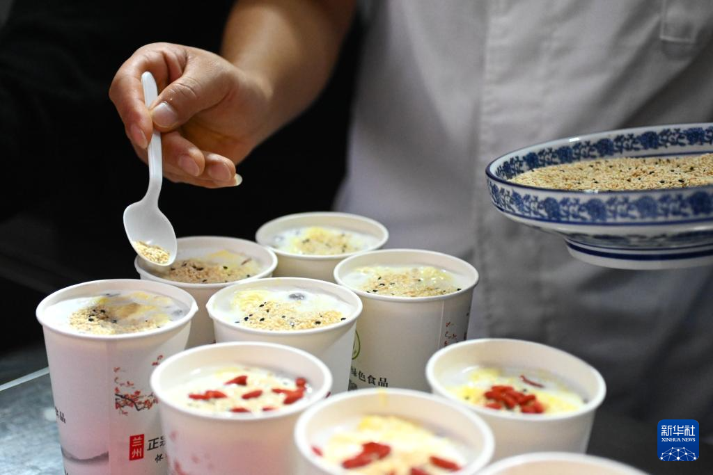7月9日,游客在宁夏银川怀远夜市选购宁夏特色美食辣糊糊。