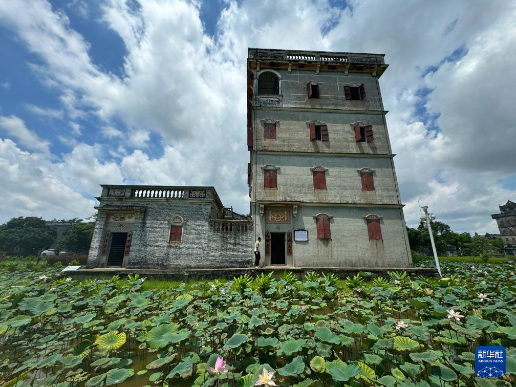 7月5日,游客在广东省江门市自力村的碉楼参观。